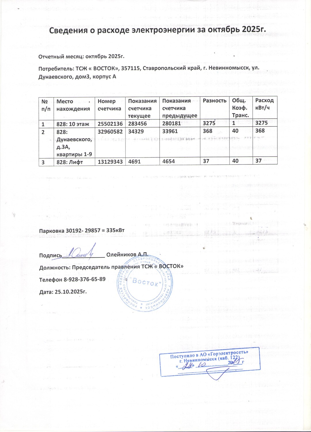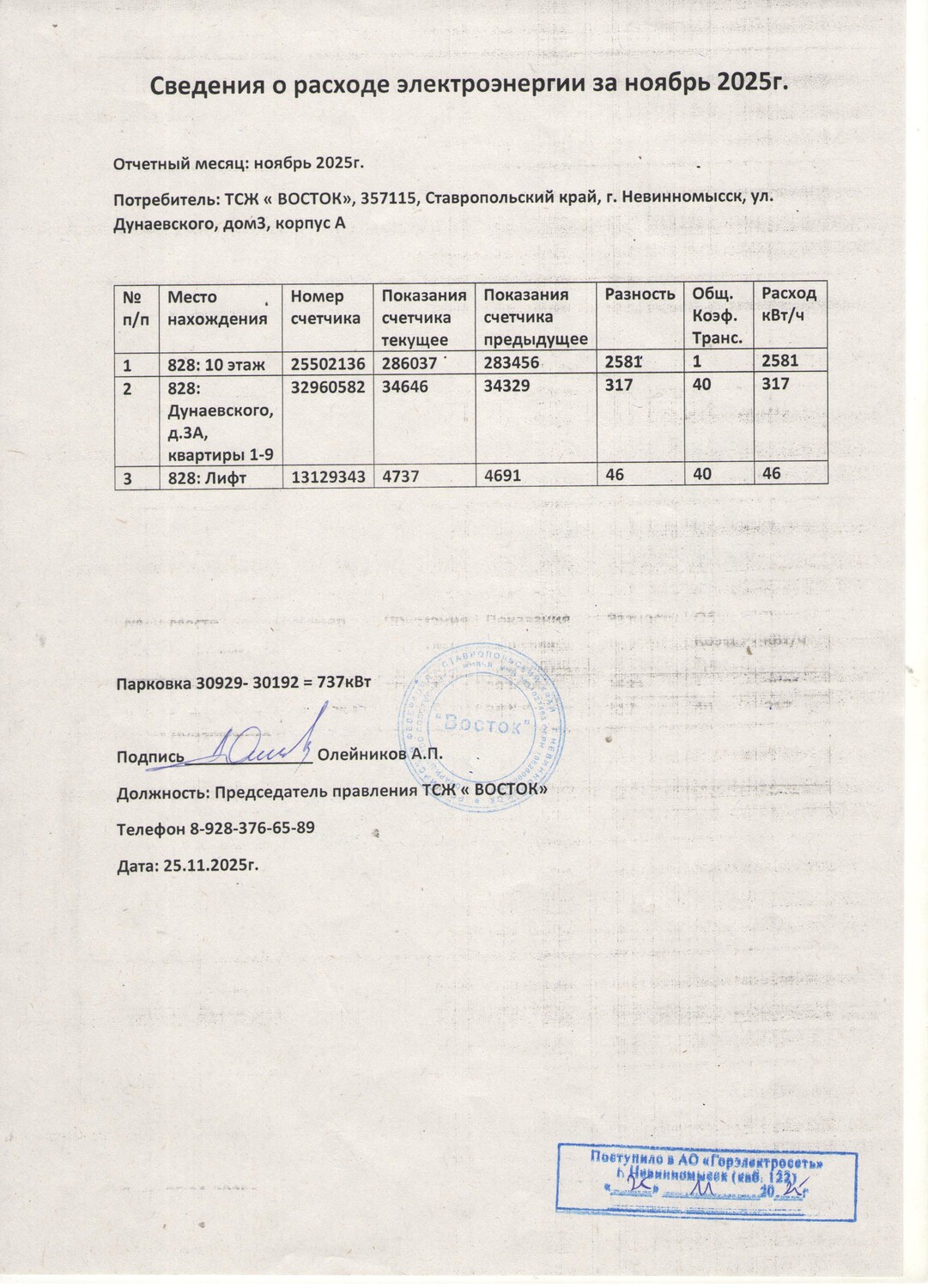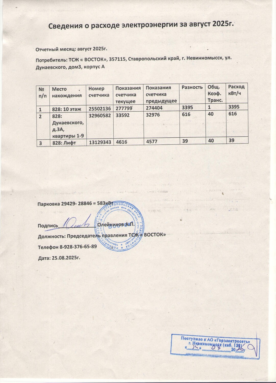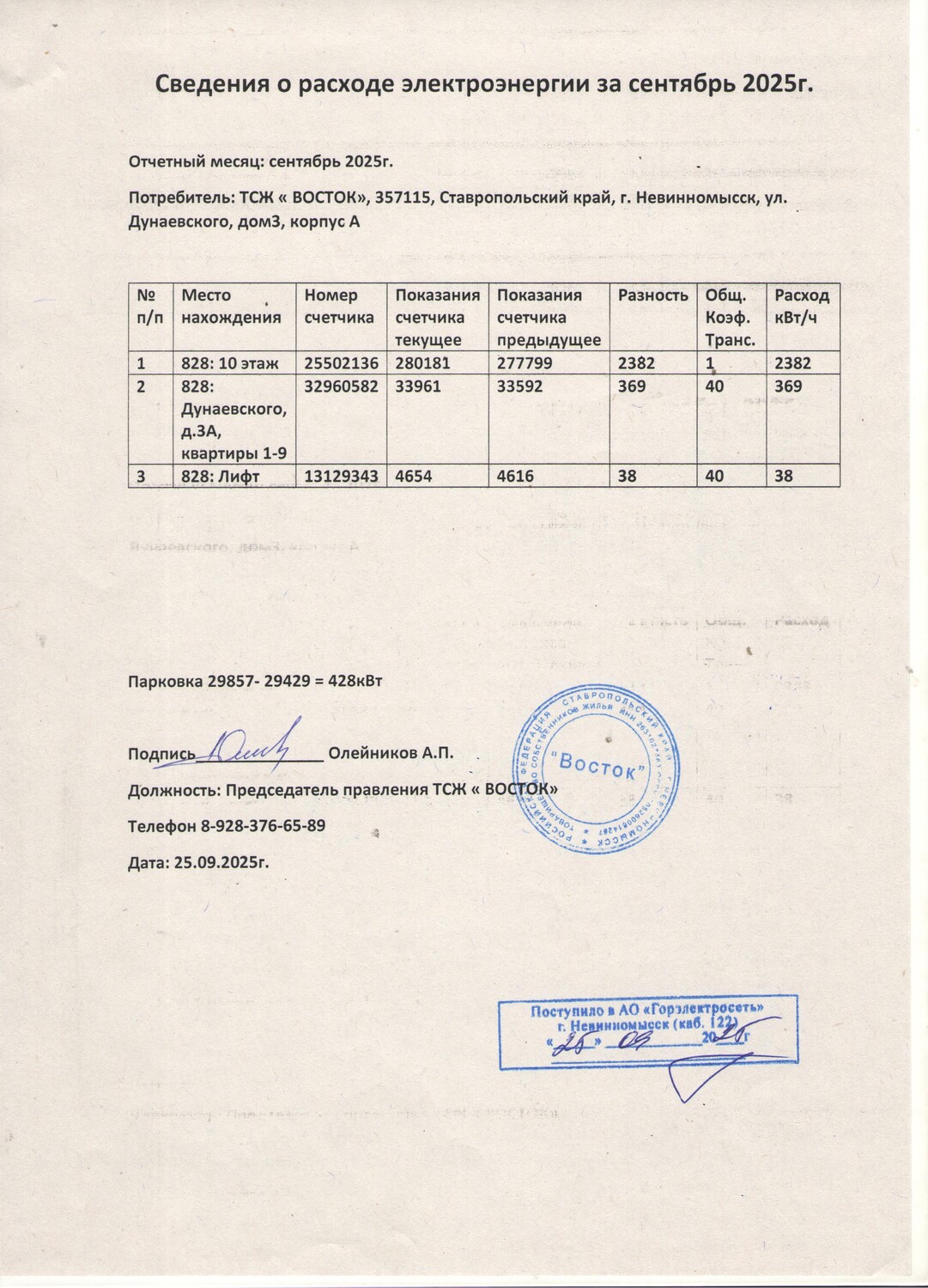 Фото 3 - Показания ОДПУ за сентябрь 2025г.