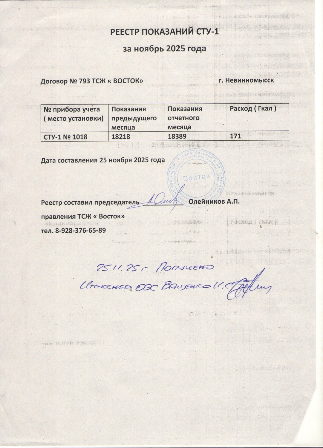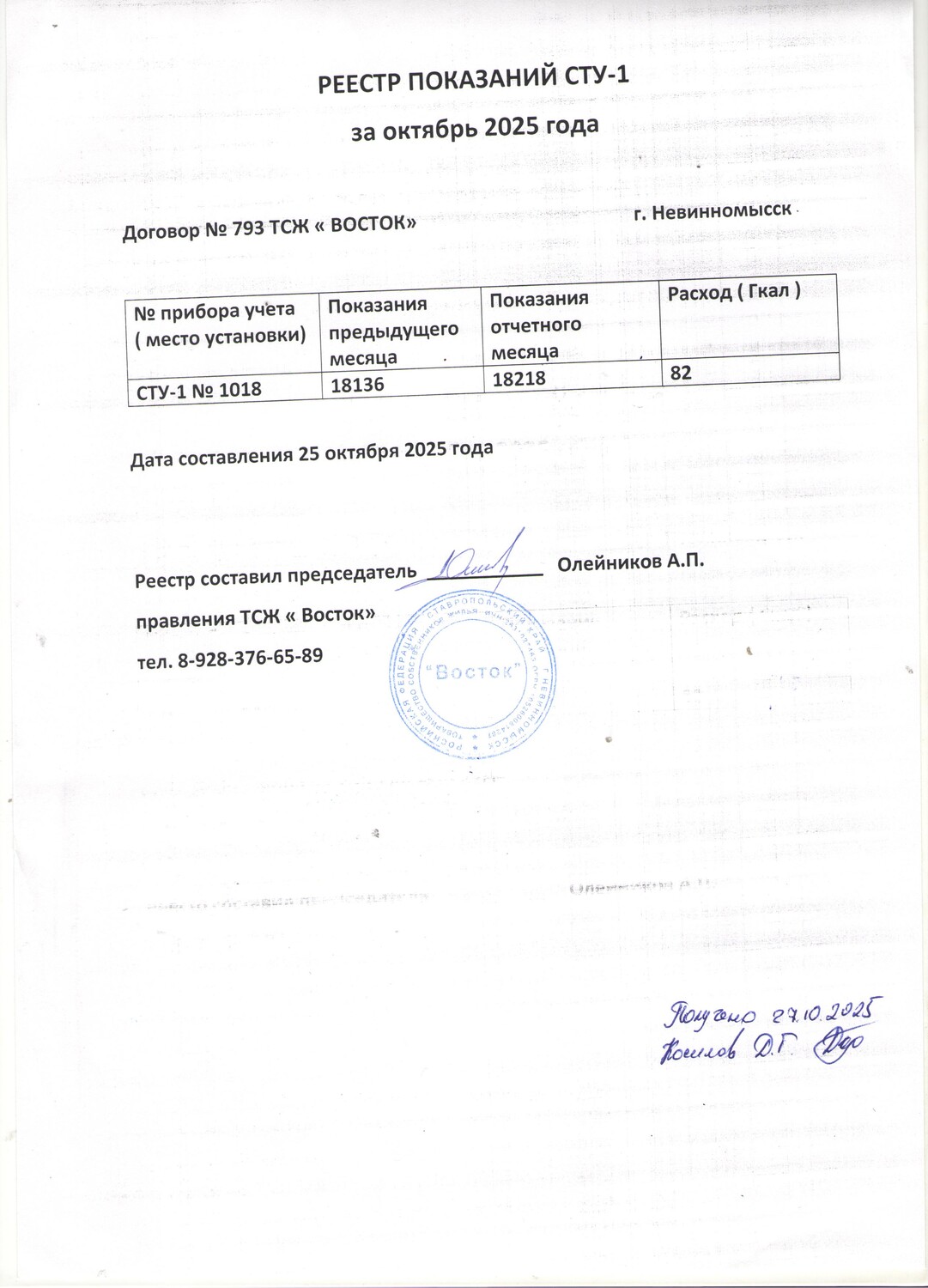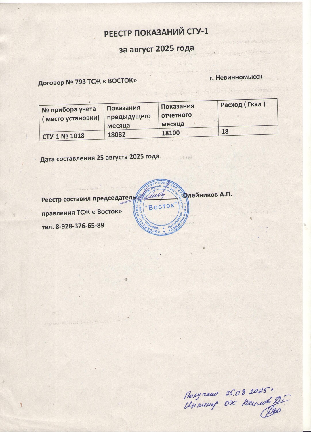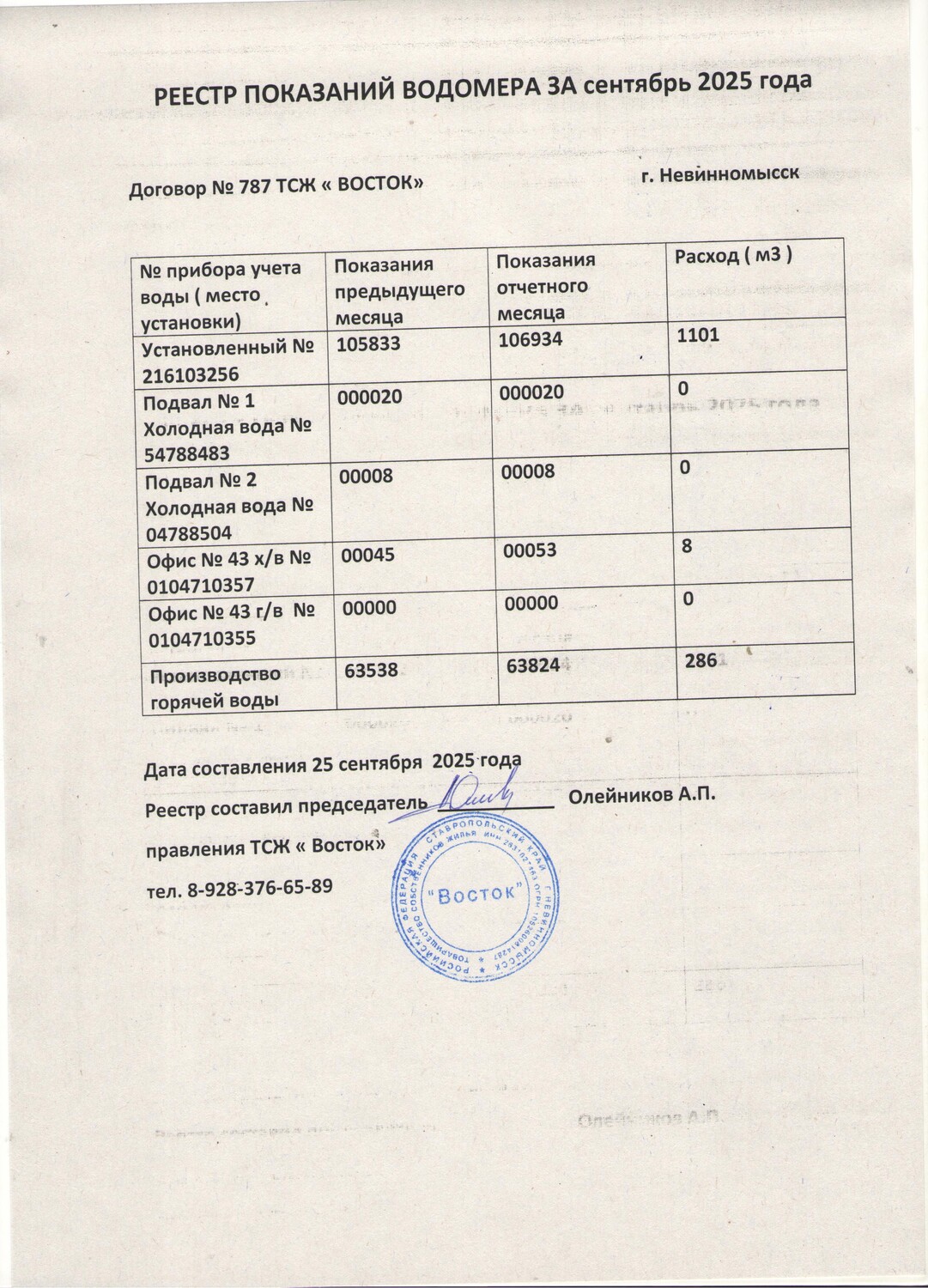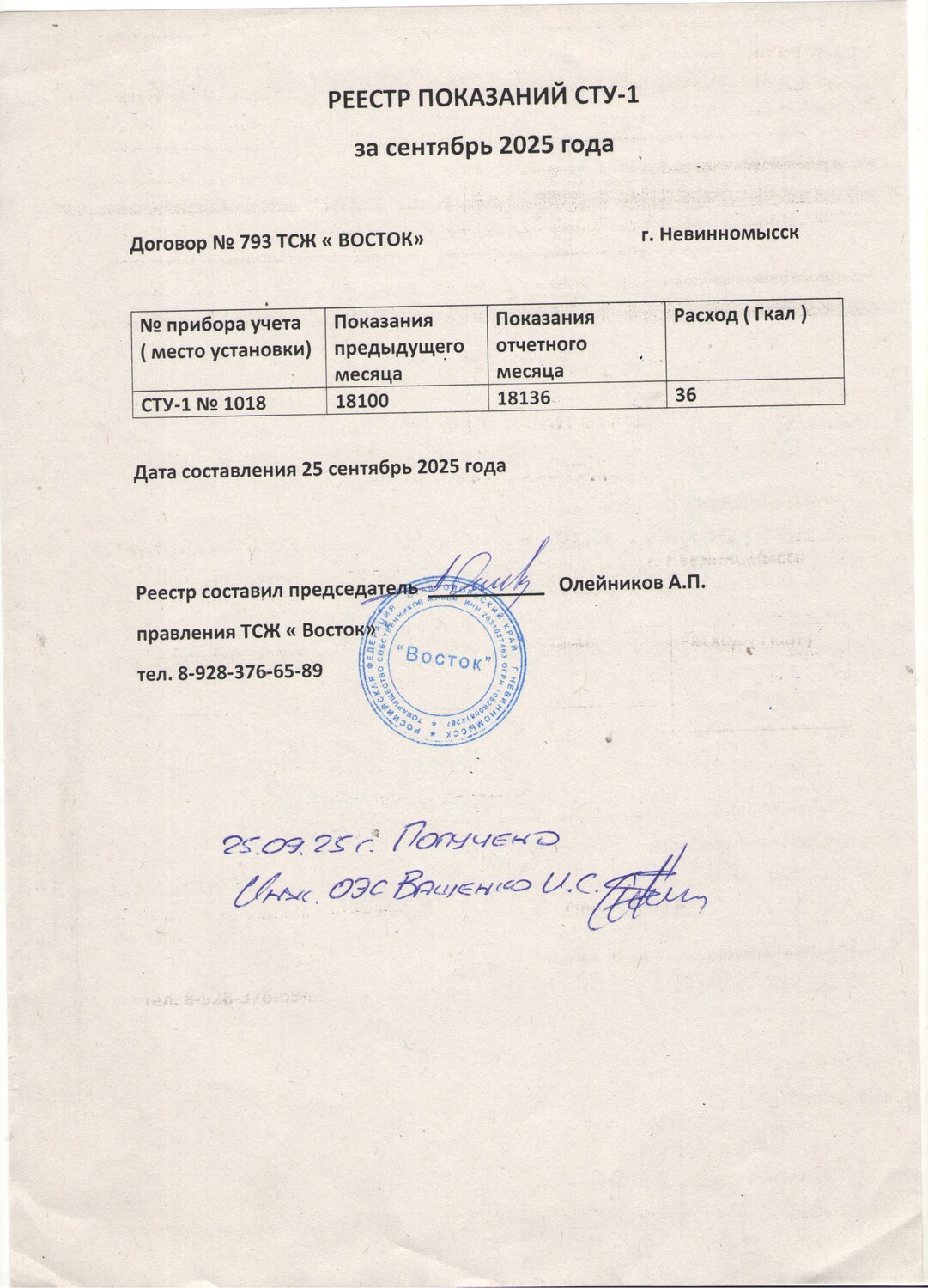 Фото 1 - Реестр показания за сентябрь 2025г.
