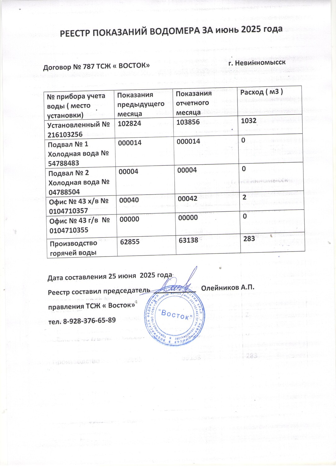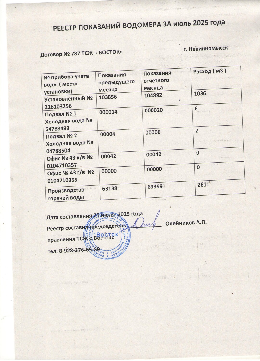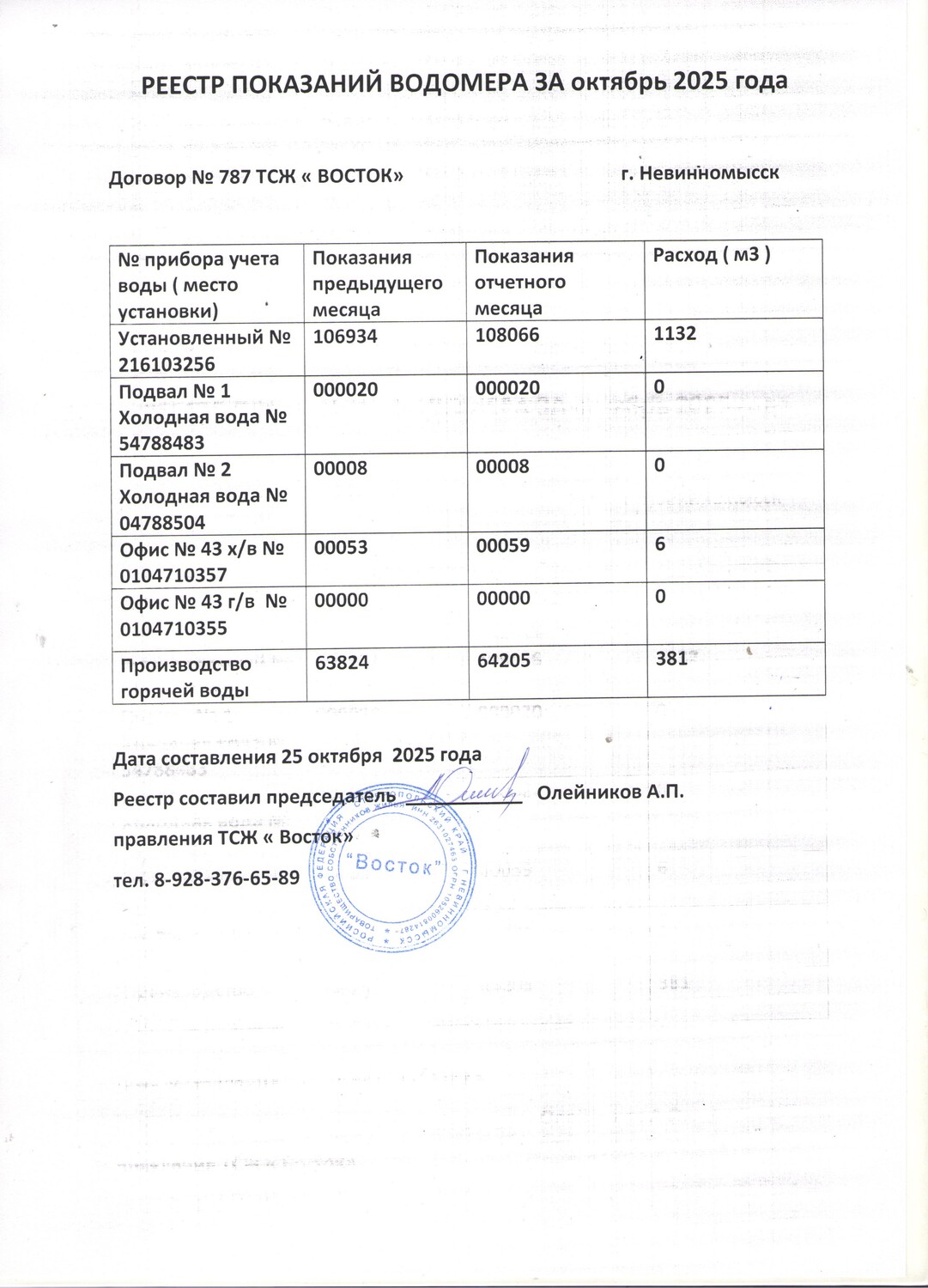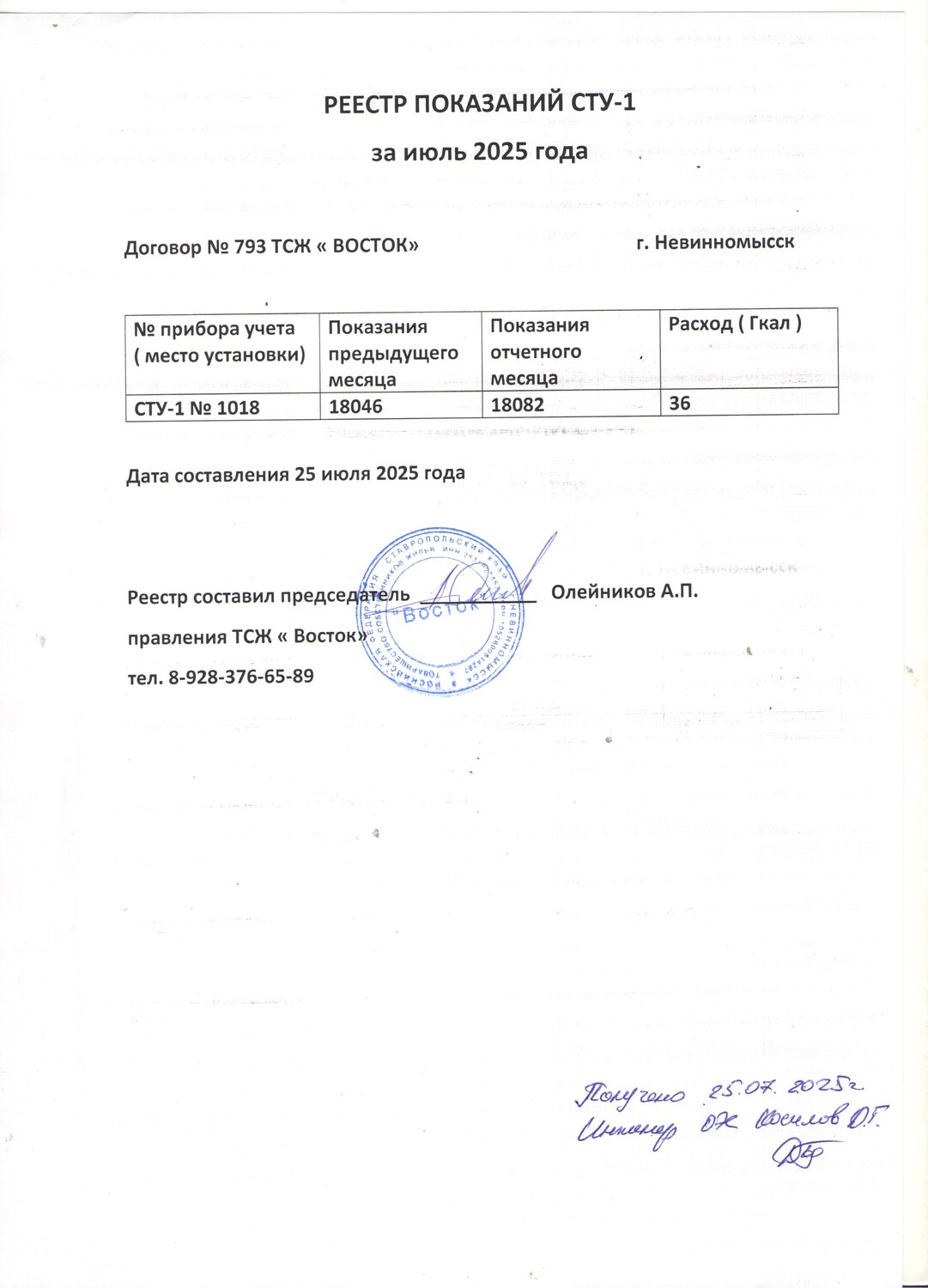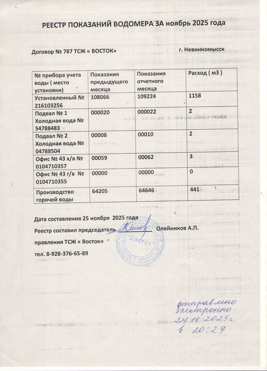 Фото 1 - Реестр показания за сентябрь 2025г.