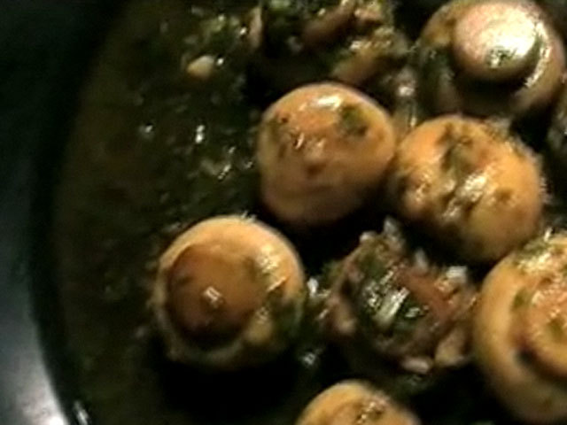 Рецепт жареных грибов с чесночком.Состав:шампиньоны, чеснок, петрушка, белое вино, масло, соль.