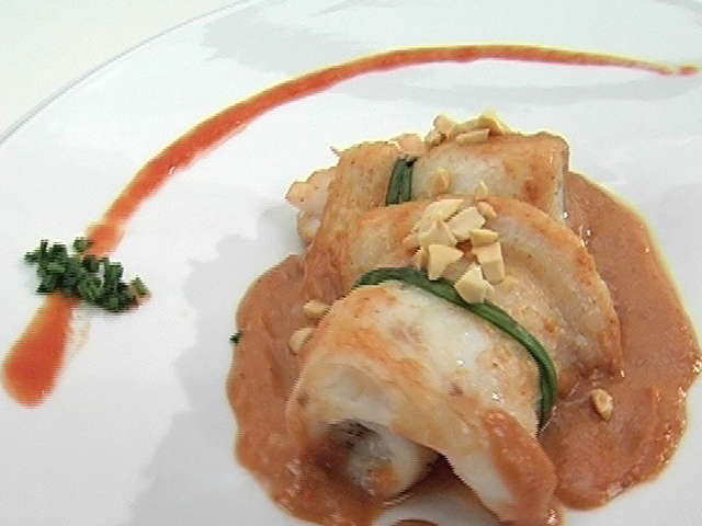 Нежное филе морского языка с бесподобным арахисовым соусом.Состав:томатная паста — 1/2 столовой ложки;арахис — 50 гр;кокосовое молоко — 50 гр;рыбный бульон — 100 гр;арахисовое масло — 1 чайная ложка;зеленый лук — 1 пучок;морской язык — 2 штуки;соль, перец — по вкусу.