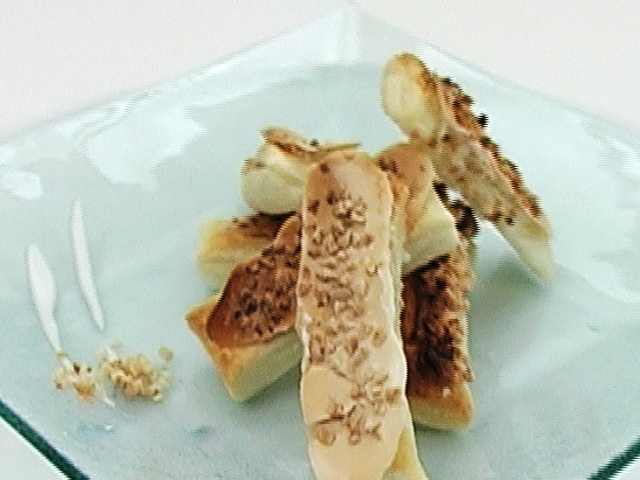 Слойки — это быстро, вкусно и сытно!Состав:слоеное тесто — 1 порция;сахарная пудра — 150 гр;белок — 1 штука;небольшое количество миндаля;сок одного лимона.
