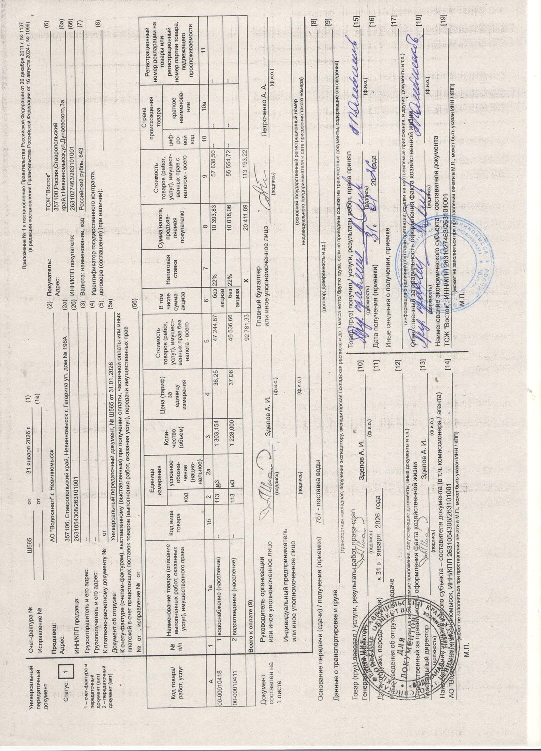 Фото 1 - Реестр показаний водомера за январь 2026 год